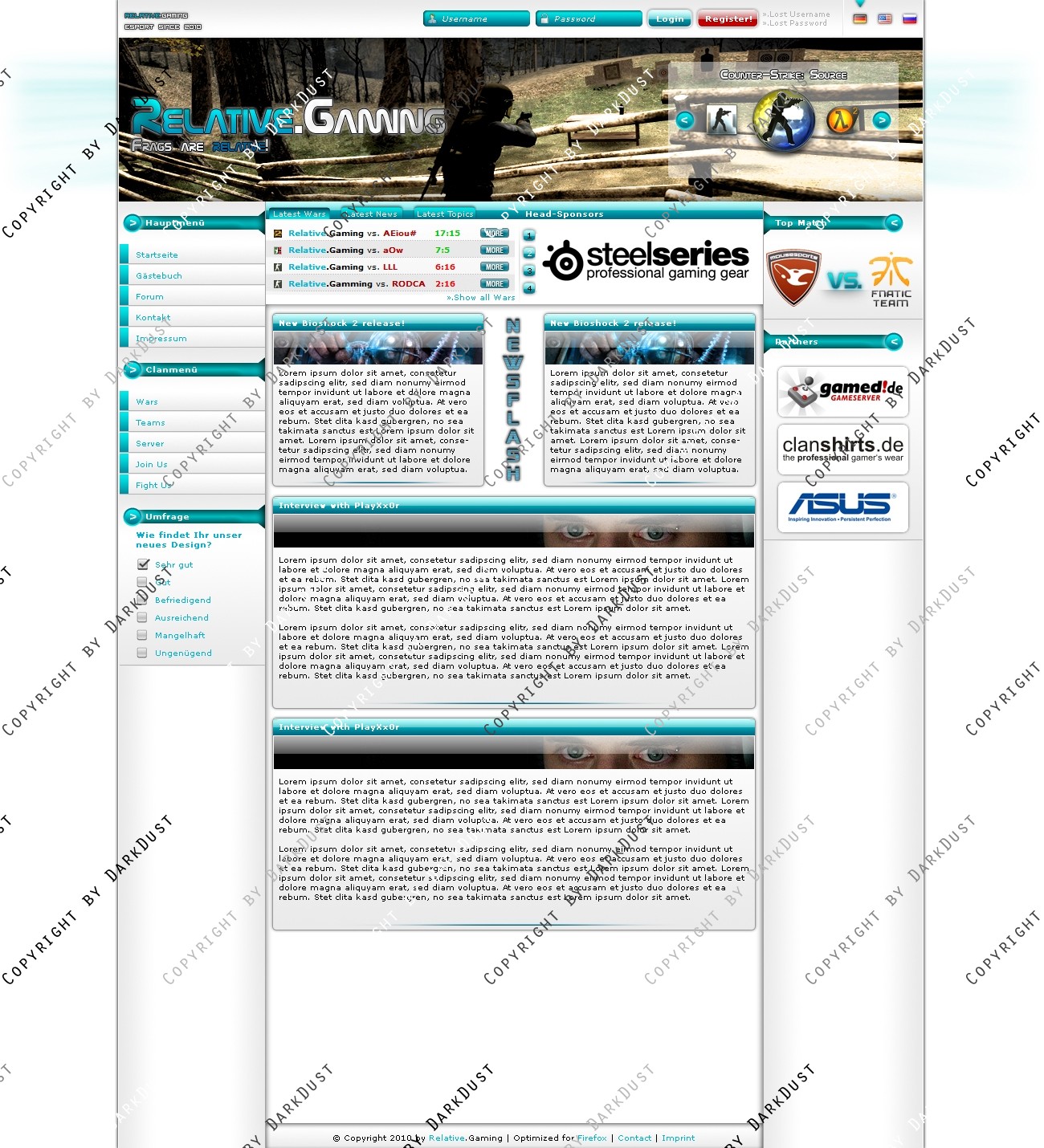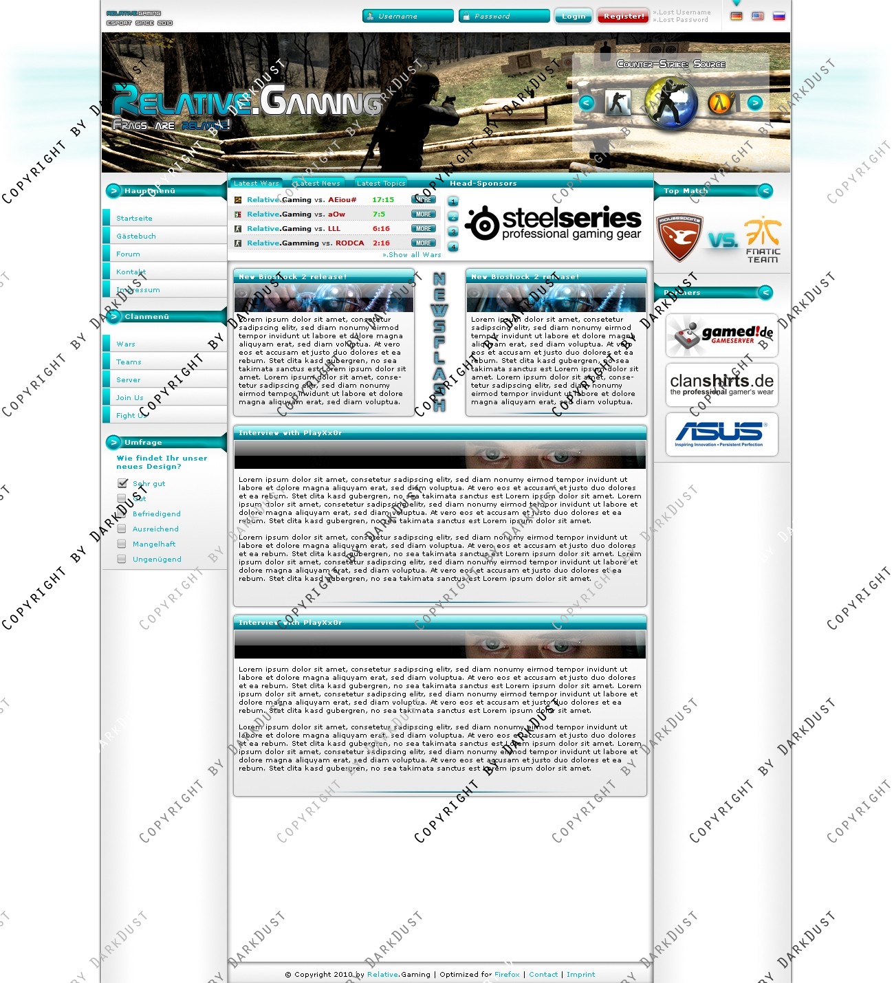 Du hast noch keinen Account auf ClanDesigns.de? Dann kannst du dich hier kostenlos registrieren!