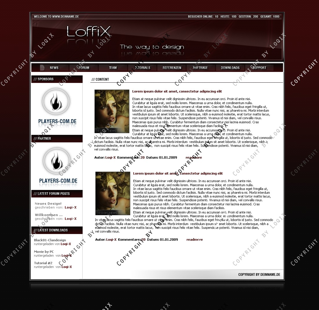 Portfolio-Design in dunkel roter Farbe. Ideal für Designer die ihre Arbeiten vorzeigen wollen.