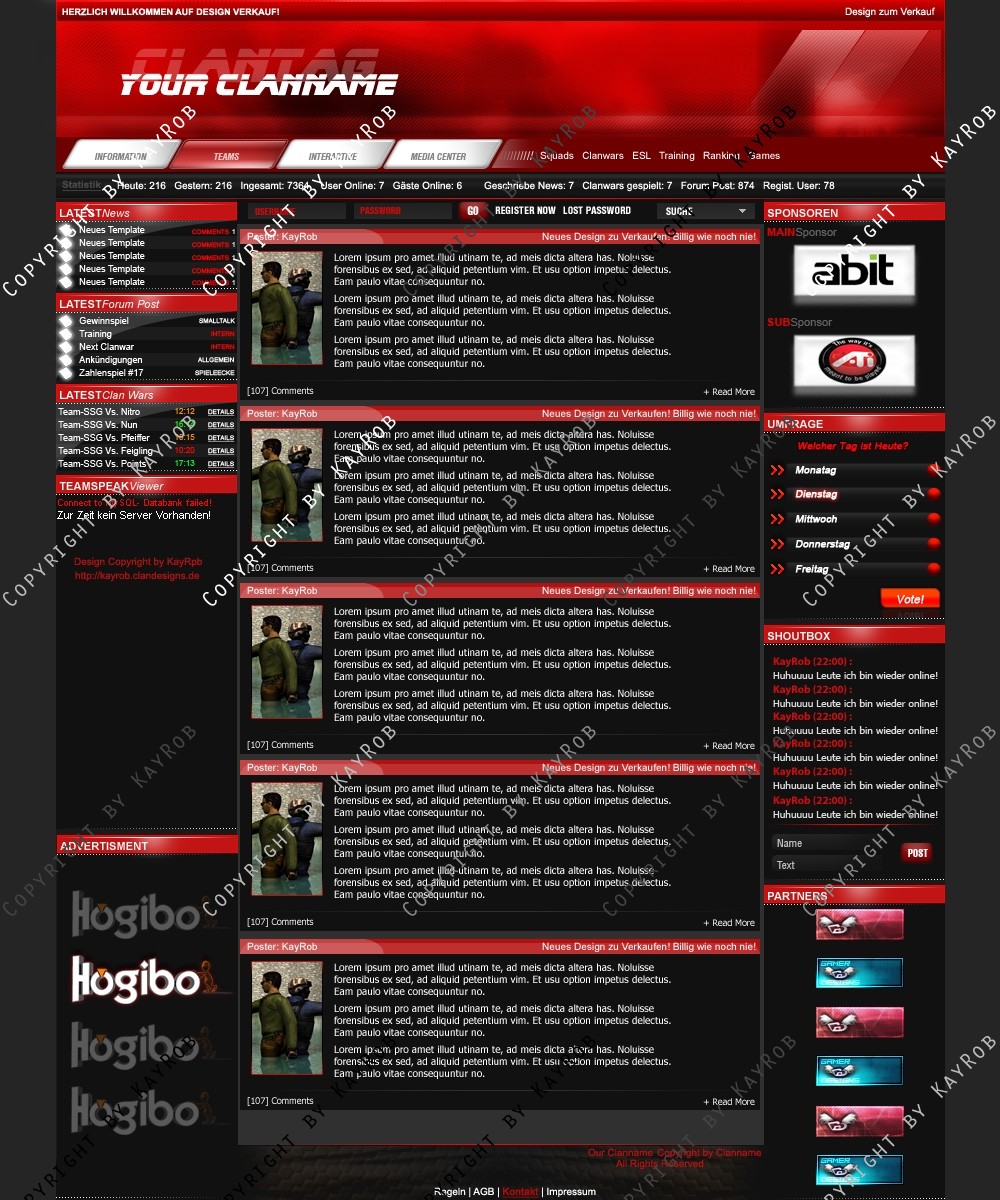 Dieses Clandesign darf OHNE genehmigung von mir Robert Erdmann nicht zum Free Download auf anderen Webadressen angeboten werde. Das weiter verschicken von Design.psd ist auch UNTERSAGT. Sollte es dies der Fall sein, werde ich Rechtliche Schritte einleiten und dies Ahnden!