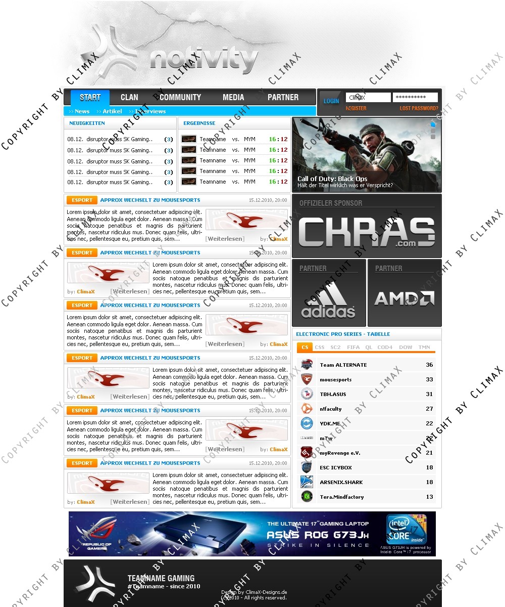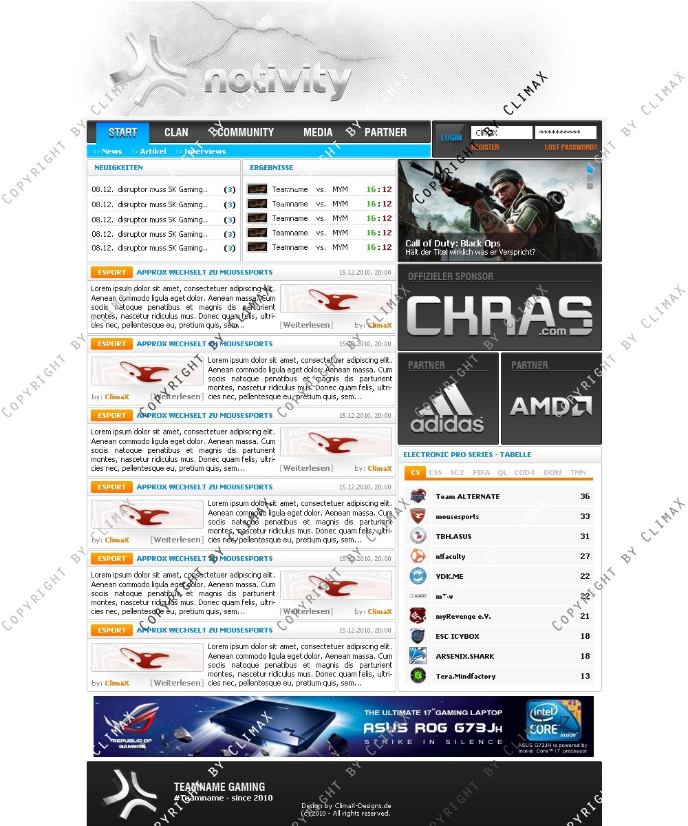 Stelle hier eine kleine Team- / Clanpage zur Verfügung. Enthalten ist nur die .PSD Datei.