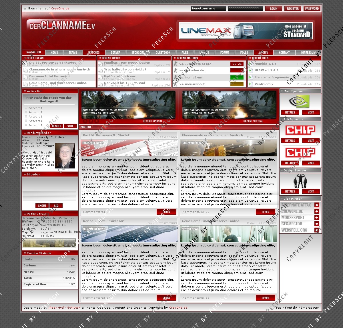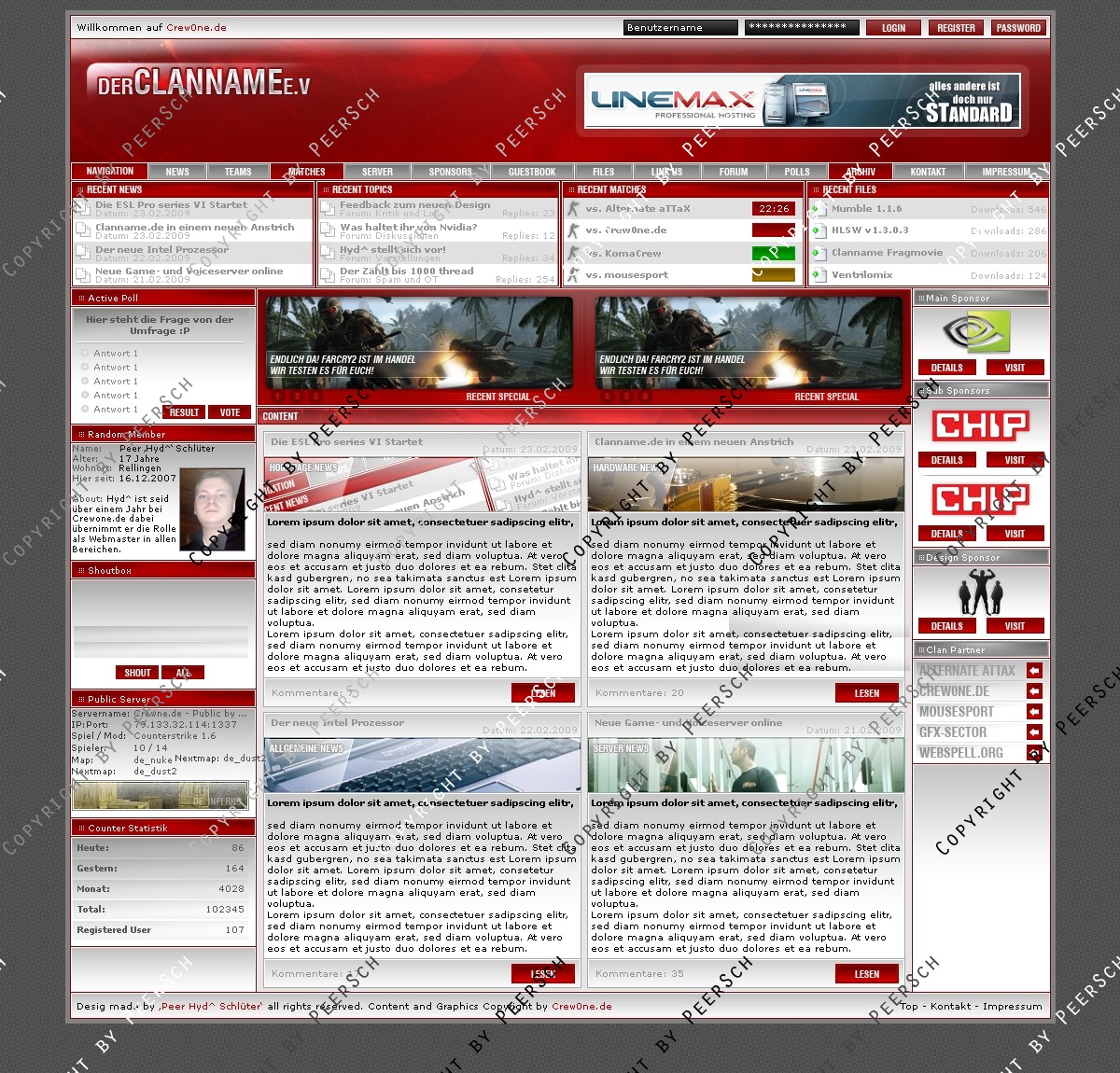 Was Sie hier kaufen ist lediglich die PSD Datei, gerne kann ich es Ihnen gegen einen Aufpreis von 13€ an ein CMS Anpassen, zur Auswahl stehen hierbei: webSPELL, Clansphere, Teklab, Devilz und andere CMS auf Anfrage ohne Aufpreis.