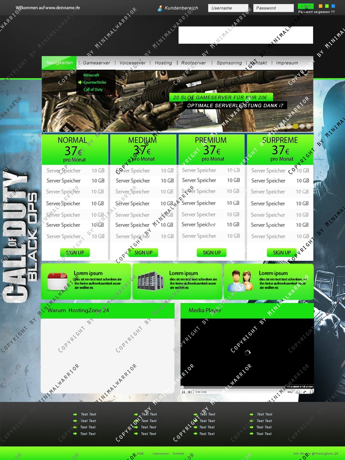 Ich verkaufe folgendes Hosting Layout mehrmals oder exklusiv zu einem für mich angemessenen Preis-/Leistungsverhältnis! Verkauft werden lediglich die .psd-Dateien des jeweiligen Templates, das bedeutet also, dass kein Code bzw. Slicing im Preis inbegriffen ist.