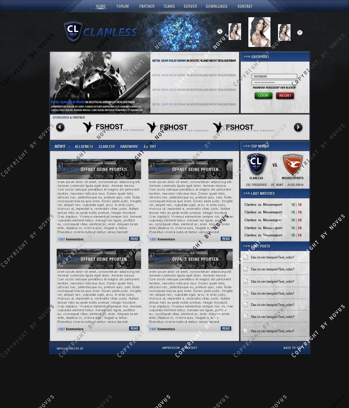 Das Logo ist nur zur Demonstration und wurde nicht von mir erstellt. Hier könnt ihr euch das Logo kostenlos runterladen: http://www.clandesigns.de/logo/3298/premium-clan-logo/