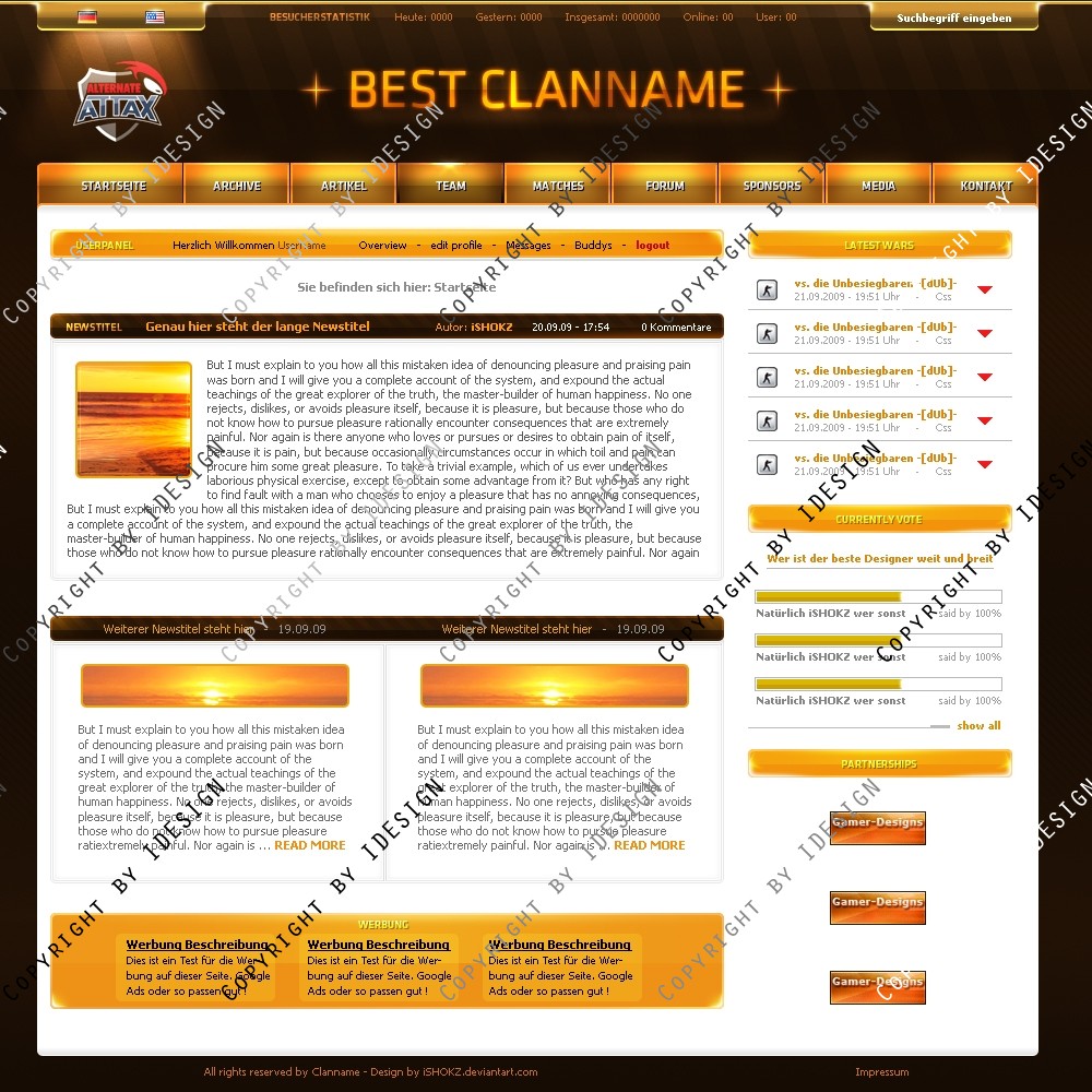 Professionelles Oranges Clandesign im derzeit angesagten schlichten Style. Doch auch einige klare Akzente setzt das Design durch Lichteffekte etc. Es ist besonders Userfreundlich durch den weißen Content.