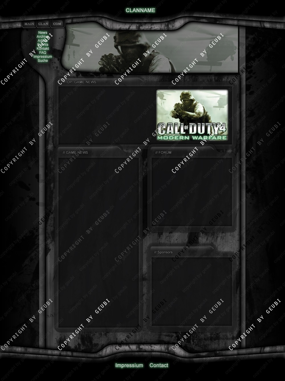 Ausgelegt auf das Spiel Call of Duty 4 bietet das gezeigte Projekt eine schnelle, und für den Kompetenten, eine individualiserende Möglichkeit einem anfänglichen oder schon aufstrebendem Team (ob Liga oder nicht sei dahingestellt) die erste Internetpräsenz aufzuziehen ohne dabei auf Anspruch und Qualität verzichten zu müssen.