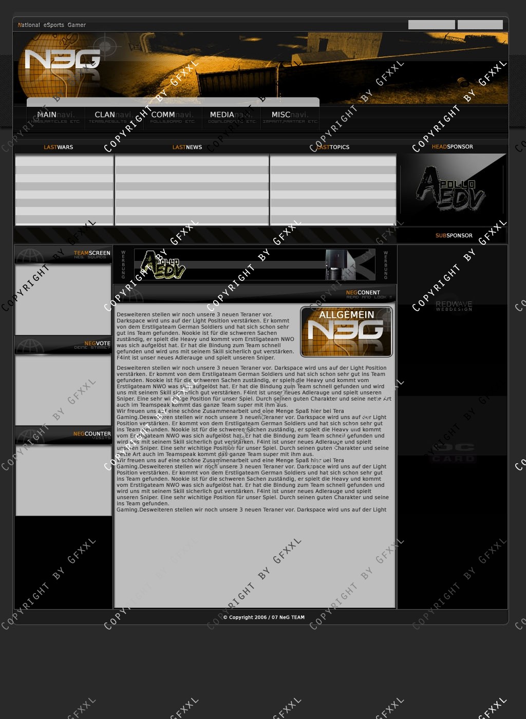 Ich stelle hiermit mein "altes" Clandesign zum Verkauf ein, er war ursprünglich für Natinal-eSports Gamer gedacht, aber aus dem Auftrag is nix geworden... deshalb hier und jetzt zuhaben!