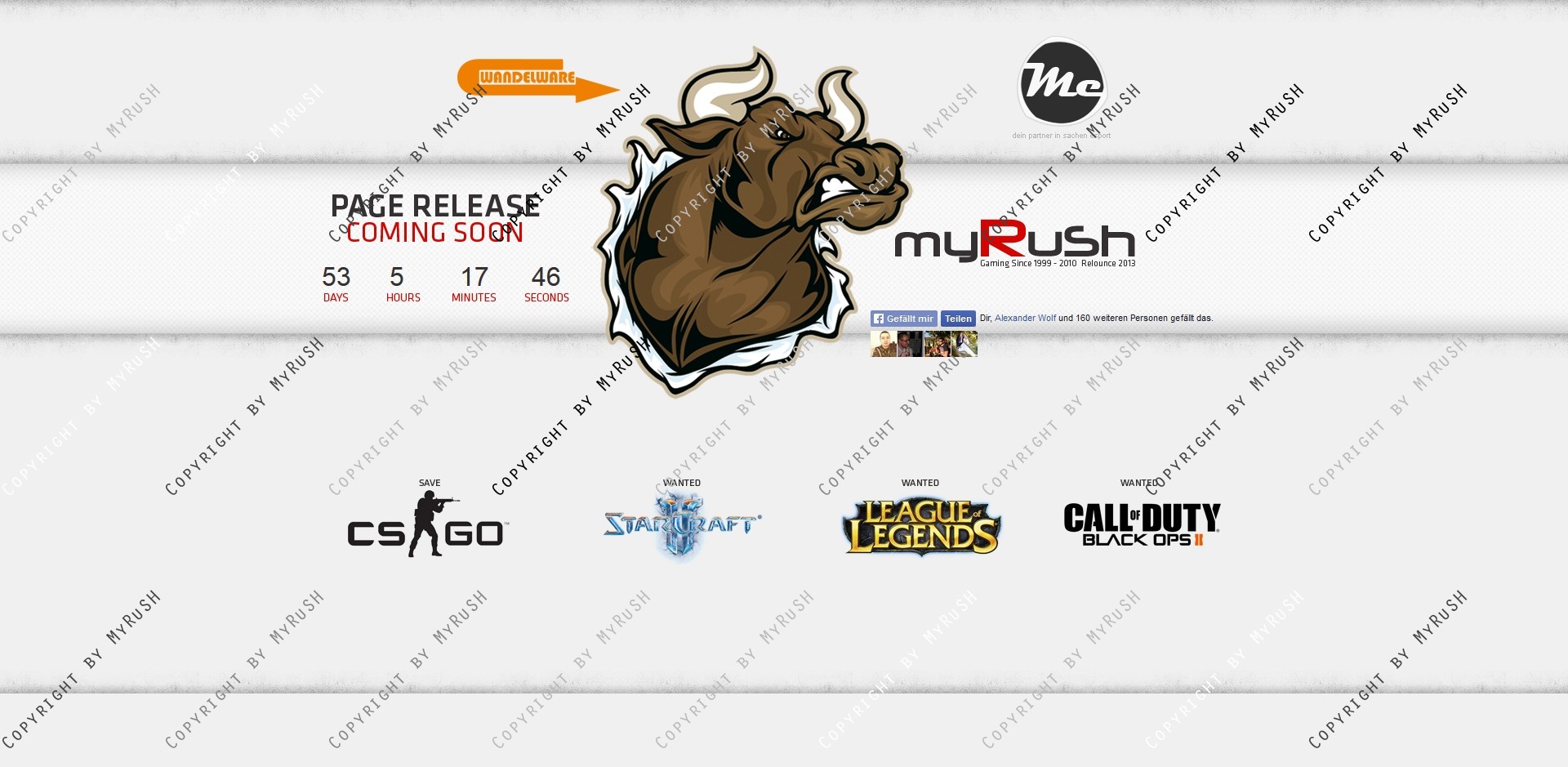 ich Biete Ihnen hier eine Countdown Page an die sie z.B zum Release zu einer Homepage mit einem Timer versehen können. Diese Enterseite bzw Countdown Seite gibt es so wie hier nur 1x und wurde für myrush Designt nun teilen wir es oder Bieten es Exklusiv an!