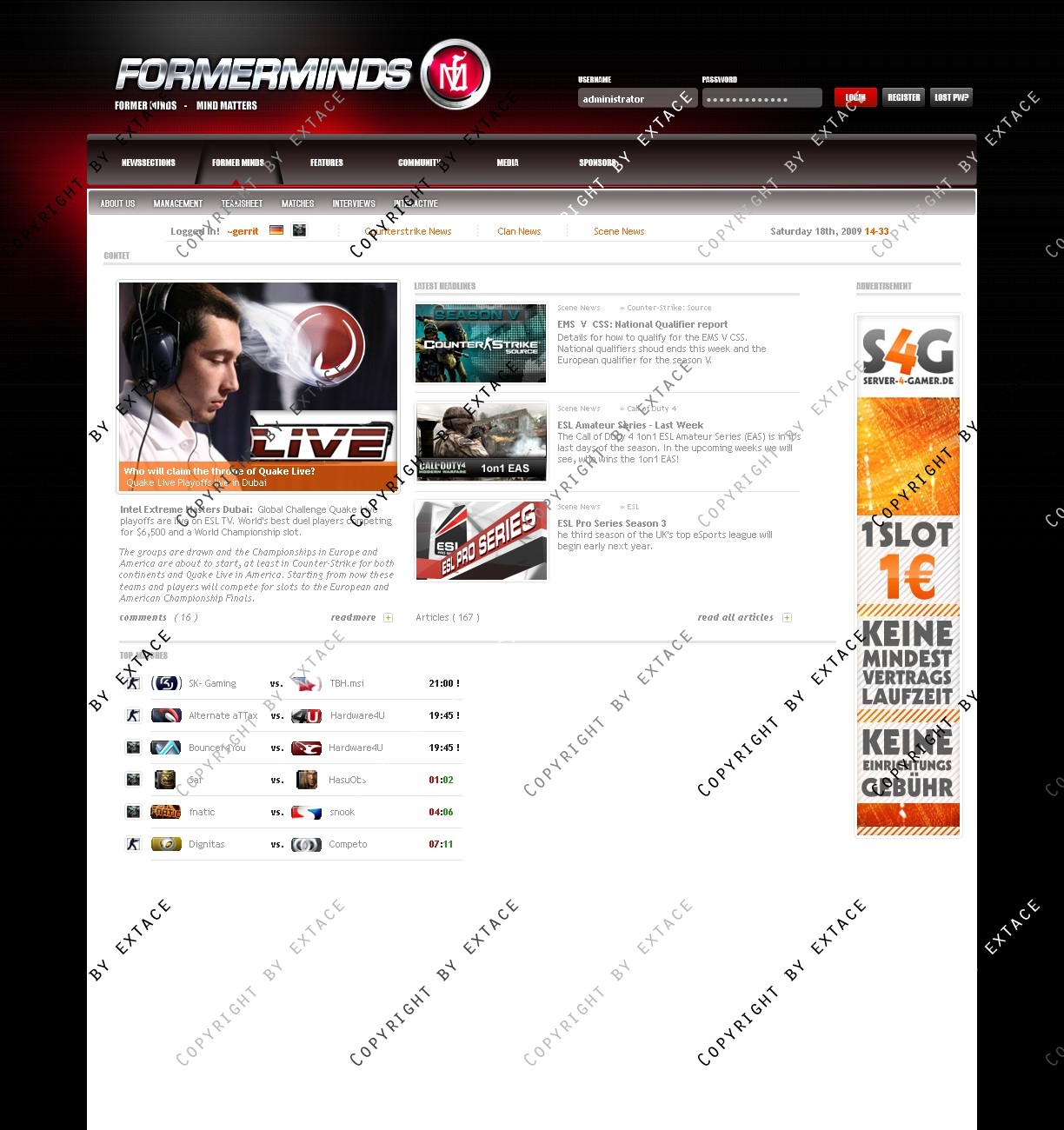 • Anpassung der Homeapage an ein CMS (webSPELL o.ä.) möglich (Zusatzkosten je nach Umfang - nur nach Absrpache)