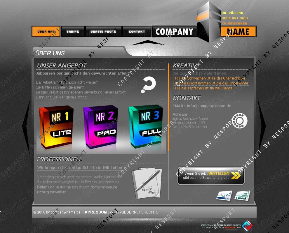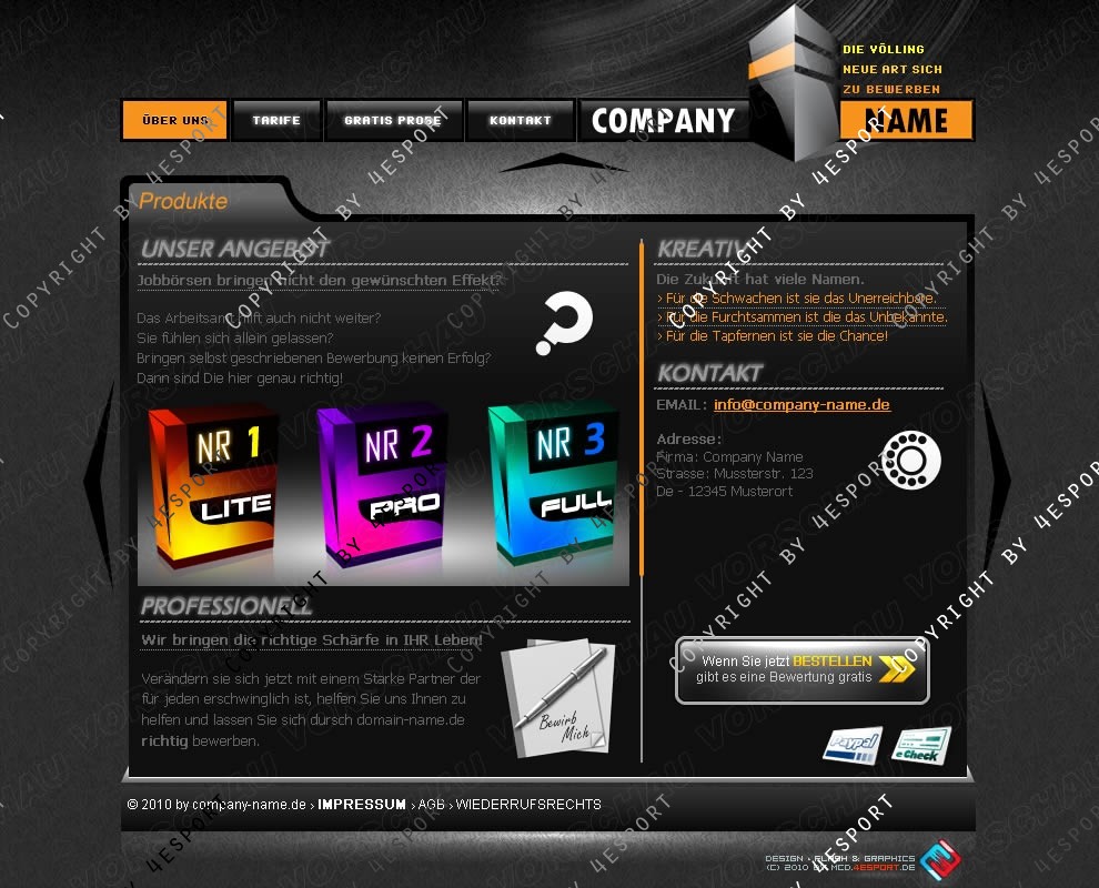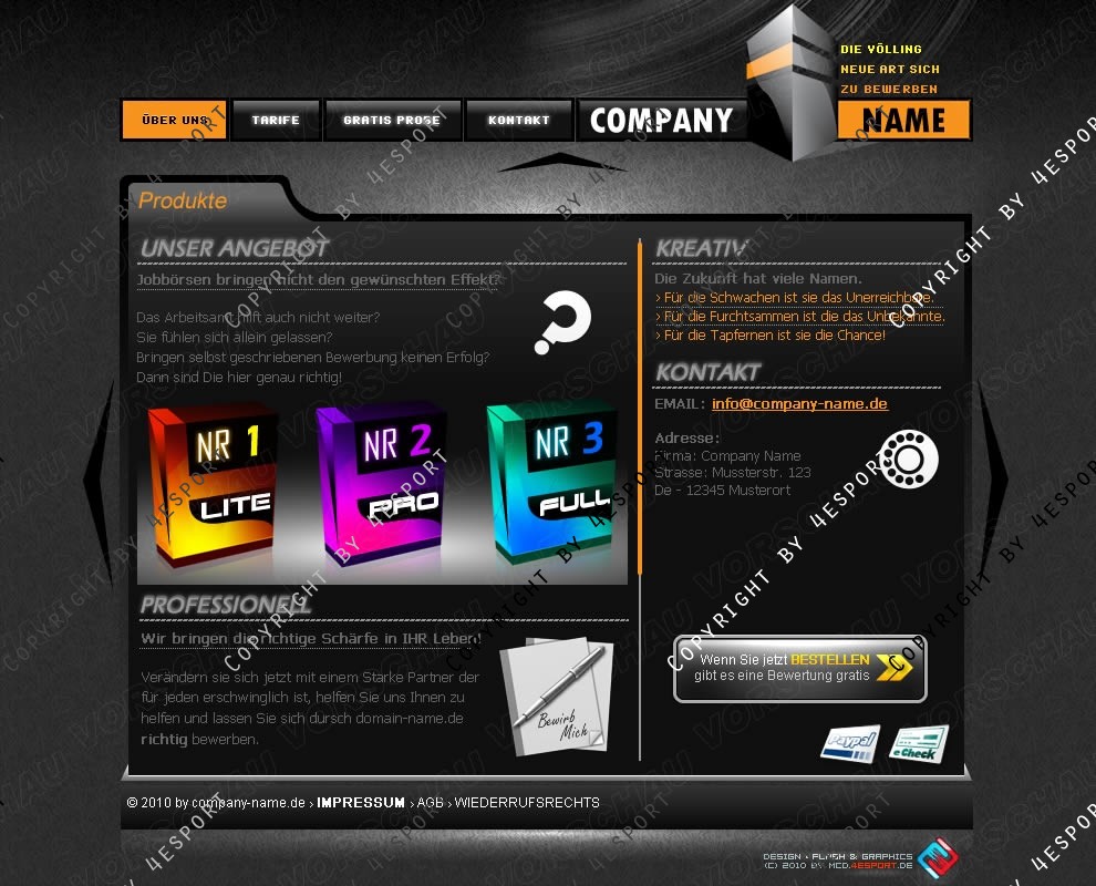 › Exklusiv, Clean & ohne vielle Effekte, Farben Weiss, Schwarz, Grau & Oranje
