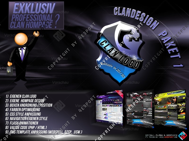1) Eigene Clan Logo (in Wappen- Format oder Style: 2D, 3D, Flash Logo +Aufpreis)