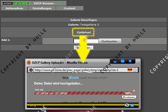 Darum habe ich diesen kleinen aber feinen Mod für das DZCP geschrieben, welcher euch erlaubt, eine zip-Datei mit Bilddateien auszuwählen & hochzuladen.