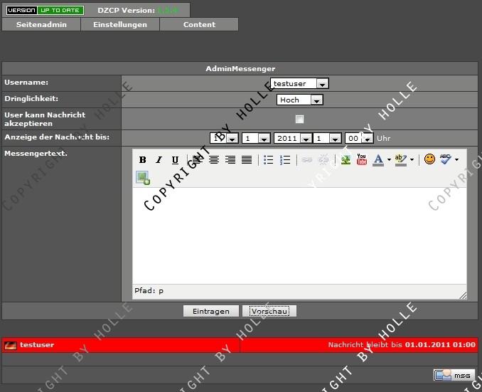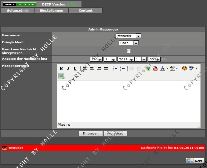 Hier nun mein Ergebnis: das AdminMessenger Addon