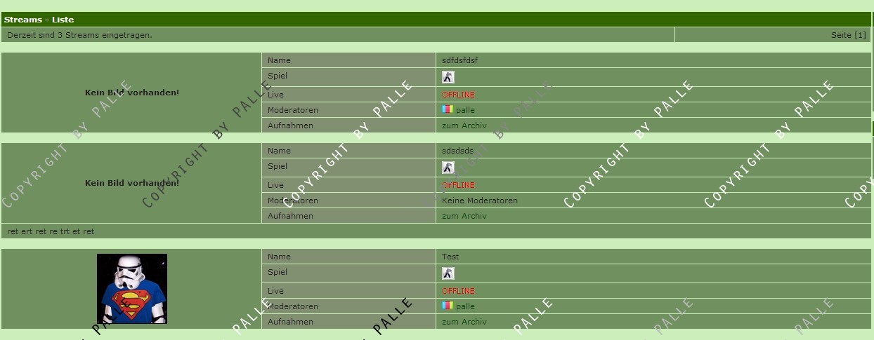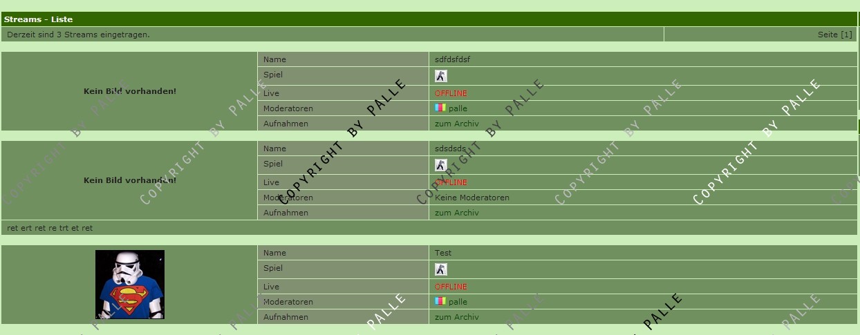 Diese werden aufgelistet, sofern ein Stream Online ist, wird dieser Automatisch auf eine weitere Unterseite verlinkt wo man diesen Stream anschauen kann und dabei ggf. etwas Chatten kann.