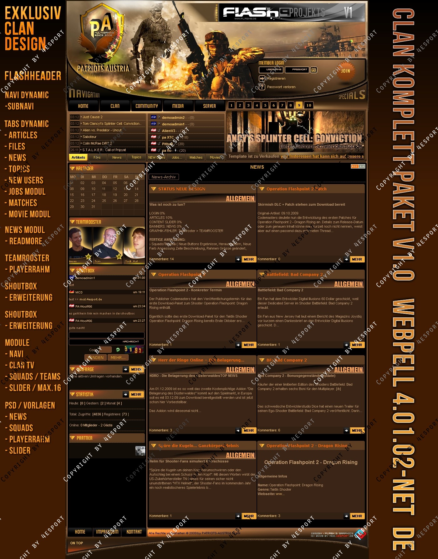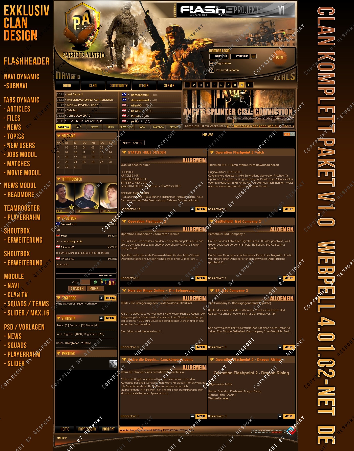PS: Dieses Design wird auf die aktuelle webSPELL-ORG  version 4.2.2-a nicht laufen.