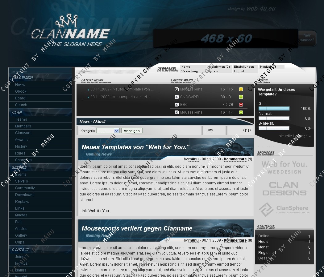 Pacific ist ein neues Template von Web for You. aus der "Feder" von Manuel Wendt. Es passt zu allen Themen, wie z.B. Clans, Firmen, Schulklassen und anderen Communities.